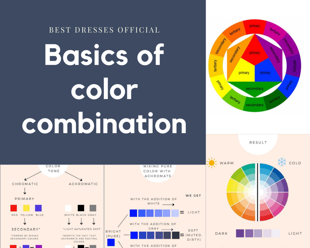 There are the Basics of color combinations (Color theory). Simple and Straightforward